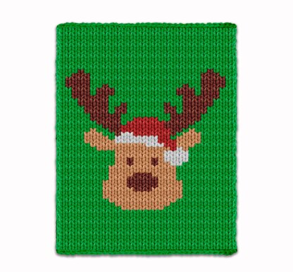Finger Knitting Pattern Christmas Reindeer in Santa Hat Knit Blanket