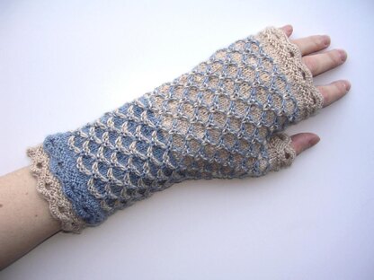 Texel is an island in the North Sea and the stitch patterns of these fingerless mittens remind me of the waves of the sea. Knit them in sea and beach colours, as shown here, or make it a colourful, abstract pattern. Why not use up all those little leftover bits of wool to make each row of waves a different colour?