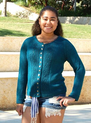 This is a pattern for a lace and cable cardigan pattern worked from the top down. You will cast on sts at the back neck and shoulders, work raglan shaping, separate sleeve sts from body, continue body, work each sleeve, and then puk sts around the collar. The buttonbands are worked as you work the body of the cardigan (and do not need to be picked up after). This pattern is separated by sizes, for ease of reading, plus full charts for the Raglan Shaping in a separate file.