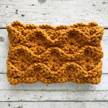 finished cowl circumference measures 26" finished height measures 8" written in US crochet terms