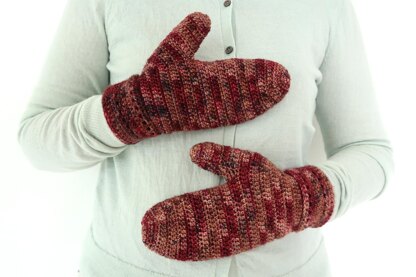 The Fireside Mittens is a super easy crochet mittens pattern. You only need to know the single crochet, double crochet, and chain stitch. I've replaced the classic ribbed cuff by an elegant eyelet design to give these easy crochet mittens more personality.