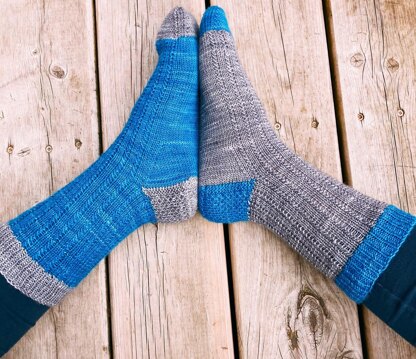 This is a lovely fine grained textured unisex sock that works best with a solid or semi-solid yarn colour. The pattern is a textured two round repeat that looks and feels great on your foot.