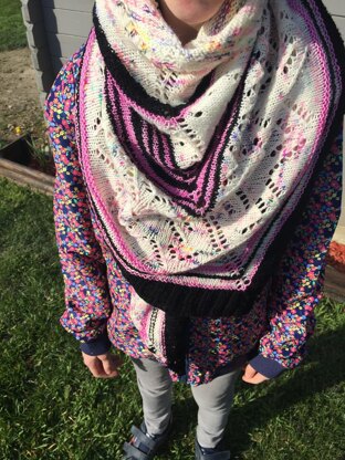 first time is a triangular shawl worked flat from the top down. its different sections rhythm knitting and allow not to be bored.
