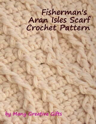 Create the look of cables with crochet and make this beautiful Irish Aran Isles style muffler scarf. Our patterns have easy-to-follow instructions and plenty of photographs. With three skeins of bulky yarn and a K hook, you can whip up this scarf quickly and enjoyably!