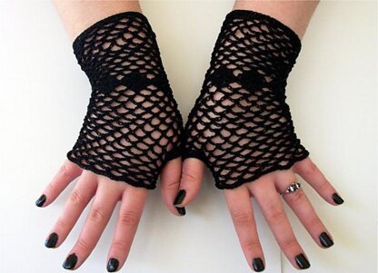 fishnet fingerless gloves with a diamond motif around the wrist