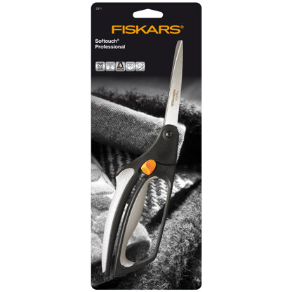The new Softouch Scissors cushion grip is specially designed to eliminate pressure on your thumb and fingers. The easy grip handle allows you to use your whole hand for an effortless cut. Thanks to its spring action design, it gently opens itself after every cut, relieving you from extra hand movement and pressure. The easy slide safety lock keeps the blades closed for safe storage. The blades are quality stainless steel, precision ground and hardened for a sharp long lasting edge. An entirely new feel, an entirely new shape. Excellent, very comfortable.Please note that you must be 18 or over to purchase this item.Fiskars Softgrip and SoftTouchand are trademarks of Fiskars Brands, Inc. in the United States, other countries, or both.