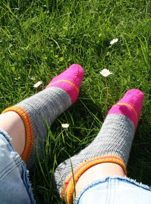Amounts needed for the sample in width S, shoe size EUR 40: 50g color 1, orange: 10g color 2, pink: 14g color 3: gray: 26g