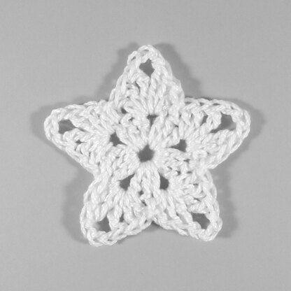 As pictured, the star measures 4" across, 2" center to point using #3 thread and a 3.75mm hook, but can be easily sized up or down by adjusting yarn and hook size.