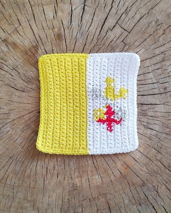 Easy crochet pattern of Vatican flag, with charts. PDF pattern with clear instructions to make this flag and use as mug rug, applique on bag/rucksack or to make a bunting. To make a double sided flag you will need just about 20g/0.7oz of sport weight cotton yarn. You can make it if you know single crochet stitch, crocheting in rows and changing colors (Fair Isle technique). Finished size: 11x11cm/4.5x4.5”