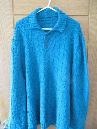 This is a pattern for a man's flags polo jumper originally designed for Scheepjes. It has a simple knit and purl stitch, 2 x 2 rib edges and a polo collar with button fastening.