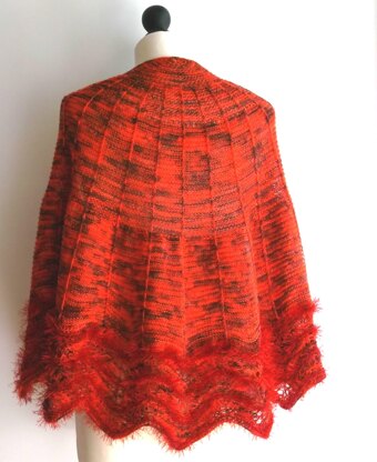 This half circle shawl has bands of slipped stitches seperating garter stitch panels and a wavy border with eyelash yarn thrown into the mix.