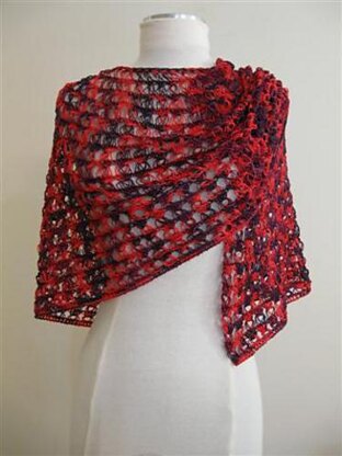 "Spanish Dancer" laceweight yarn is worked in broomstick lace to create this colorful and comfortable shawl. Stitches are decreased so the top is narrower than the bottom, and hugs the shoulders. Fling this shawl over your shoulder, and the resulting gathers resemble a rose.