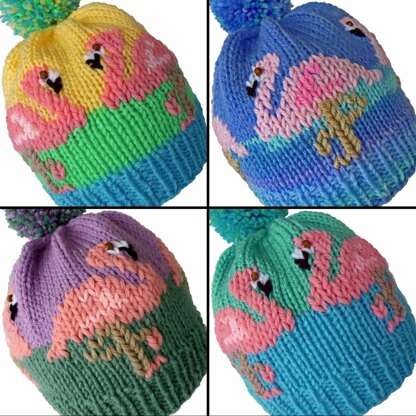 As a zoo volunteer I love to knit hats featuring our amazing animals. This adult size pattern includes 2 flamingo hats, Flamingo Parade and Facing Flamingos. Flamingo Parade has 5 flamingo encircling the hat. Facing Flamingos has 2 lovebirds facing each other at the front, back ot both.