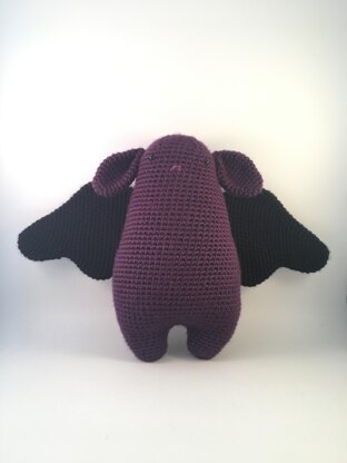 This Flappy Bat Critter measures 8.75 inches tall and is made from soft, worsted weight yarn. By using different hook sizes or yarn weights, the end product may have different dimensions.