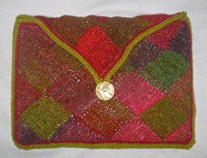 Patterns for a laptop bag and pouch are given in full to demonstrate the entrelac method. There are also notes to make a scarf in Noro Silk Garden Sock yarn and instructions on how to use the entrelac technique for other items. The pattern includes how to “knit backwards” – work purl side stitches on the knit side to save turning.