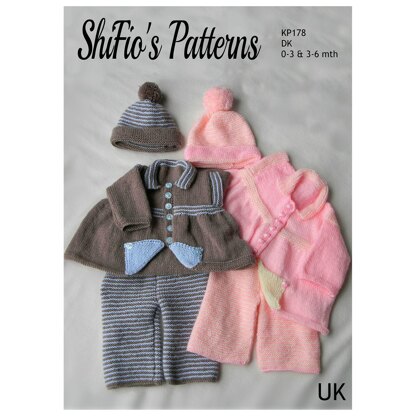 Sizes:0-3 mth -Chest 20”(50cm), Jacket length 10½”(27cm), Sleeve 6”(15cm) 3-6 mth - Chest 22”(55cm), Jacket length 12”(30.5cm), Sleeve 6 ½”(16.5cm)