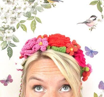 A truly gorgeous pattern for a headdress of flowers, to wear at festivals, as part of a costume or just because. Originally made as part of a Day of the Dead costume, it was just to beautiful to be relegated to being worn once a year.