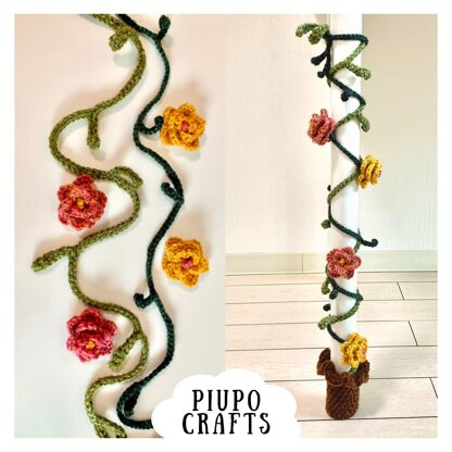 3 patterns in 1 – Ruffle flowerpot, vine and leaves, and flowers. This is a table leg sock pattern, but you can adjust it to be a chair leg sock or use only a vine and leaves pattern to decorate your room.