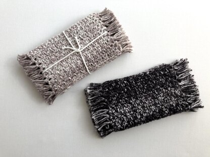 Use whatever cotton or cotton blend you have. The moss stitch in this pattern gives the mug rug a nice texture, and a moves along very quickly.