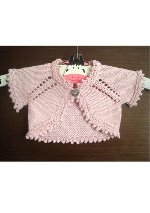 A super cute and quick-to-knit bolero with a pretty picot edging.