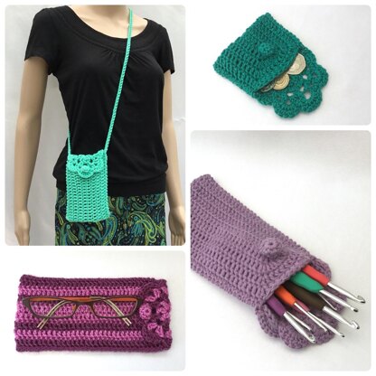 This crochet pattern can be used to make cute summer bags the perfect size for carrying the essentials, coin purses, or cases which can be used for glasses, pencils or even crochet hooks.