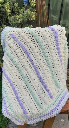 This is a lovely repeating pattern that when made in Flutterby or Bernat Blanket etc make a sumptuous and luxuriously soft and snuggly baby blanket.