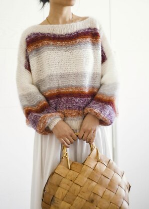 Flow Sweater is a beginner friendly oversized pullover with fitted hem and cuffs. It is worked from the top down, featuring a flattering bateau neck. The fitted hem and cuffs balance the oversized look. Worked in a lightweight mohair yarn, wearing this sweater is like being hugged in a cocoon. Flow Sweater is graded with inclusive sizing in mind, designed to fit actual bust sizes from 76 cm / 30 inches to 168 cm / 66 inches. Measurements are given in both cm and inches.