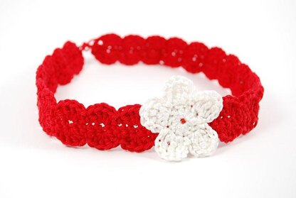 Easy pattern to crochet a shell headband and a 5 or 6-petal flower.