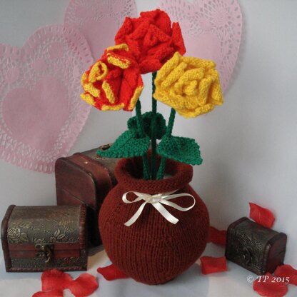This is a pattern for a beautiful hand knitted Flower and Vase.