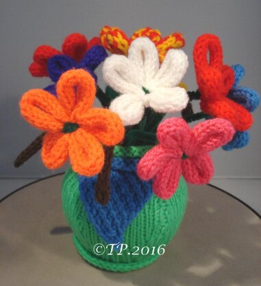 The pattern is for a 7 inch flower and vase , it is very simple to make and will enhance any rooms appearance.