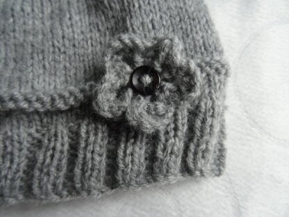 Easy knitting pattern for a hat featuring a pretty detachable knitted flower, which you could make in a range of colours to match or contrast the hat. A cute accessory for any girl's wardrobe! The hat is knitted flat and seamed, with sizes ranging from baby to adult: 35, 40, 45, 50 and 55 cm diameter.