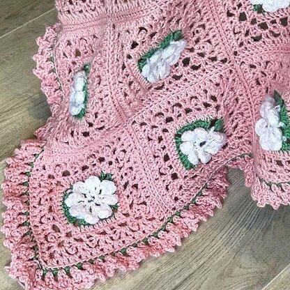 This afghan is made with a bunch of granny squares that are then sewn together and finished off with a lacy edge. It's a bit time consuming but SO WORTH IT!