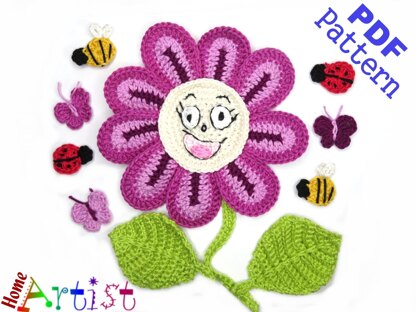 The pattern provides instructions to make a cute crochet applique that can be used in inumerable ways...decorate and personalize your favorite objects like hats, t-shirts, bags, school knap-sacks and lots of other stuff you can think of. Flower: 6 inches across using crochet hook 2.5mm but the size can be varied by using thinner or thicker yarn and types of hook. Colors can be changed according to your personal preference. The pattern is designed for worsted weight yarn and uses American English crochet terms. This crochet pattern is available for Instant Download. Once your payment is received, you will get an email with the download link and details of your order. In case of problems feel free to contact me anytime.
