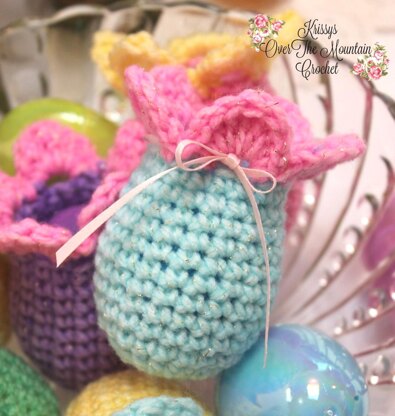 How cute and adorable are these little flowered egg covers? Fill a plastic egg with candy, put it in the cover and give as a gift. The top is still open so that you can run fishing line through the holes in the plastic eggs and hang them from a tree or in the windows of your house.