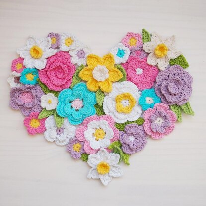 Pattern includes 5 different flower patterns with many pictures to show the process step by step and heart template.