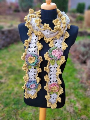 4 Buttons of your choice so help stabilize the flowers and for flare! 5mm hook for scarf and flowers 4mm hook for Leaves