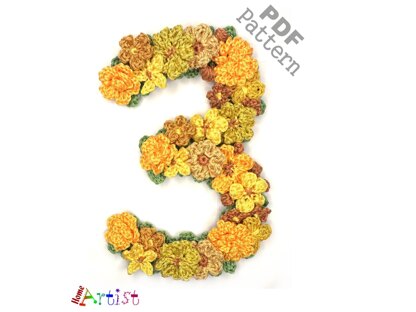 Flower Number 3 crochet applique pattern