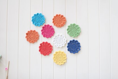 A simple and decorative coaster pattern that can be made in any worsted weight (8ply) yarn. See also my 'Flower Power Mandala' for a larger version that can be used a doily.