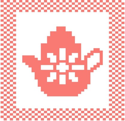 Hand-designed flower teapot dishcloth pattern. All of my patterns are free-drawn and converted to a pattern on knitting graph paper. I never use knitting pattern creation software to design my patterns. One skein of sugar n cream yarn on size 4 (US) needles is used to create each dishcloth.