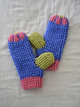 You will need- a 6mm crochet hook and approx. 105g of aran acrylic yarn. You would need 1- 100g balls of the main colour and a very small amount of the flower center and petals, great if you have some small bits in your stash that need using up. The pattern shows you the yarn informantion for the blue, pink and green mittens but the colour options are endless! I always add images to make it easy to follow along. Pattern written in U.K terms, for personal use only. This pattern is not to be used to create products for sale. Thank you.