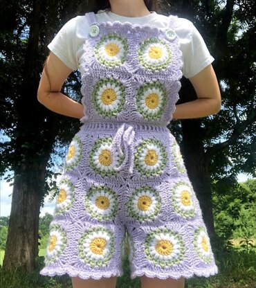 This advanced beginner patchwork pattern is perfect for a refreshing summer look. The Floweralls are comfortable to move around in while they provide full coverage as bottoms.
