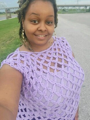 The flowers and diamonds crochet summer top is a very lacy summer top that can be used as a beach cover up. It is a one size fits most. It's a very easy pattern.