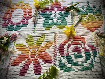 Perfect to use as a crochet flower baby blanket pattern, crochet wall hanging pattern, crochet bag pattern ... you are only limited by your imagination.