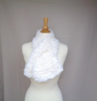 A super fluffy faux fur keyhole that’s cute and comfortable to wear. Very easy – and quick - to knit, entirely in garter stitch.