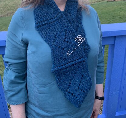 They are knitted on 6.5mm needles so whip up quickly – ideal for last minute gifting or if it suddenly turns chilly! The large cowl is long enough to wear doubled over but looks equally good draped around neck and fastened with a pretty pin!