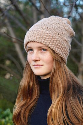 Flutter Butterfly Hat, a simple lace pattern a deep rib and finished off with a pompom.