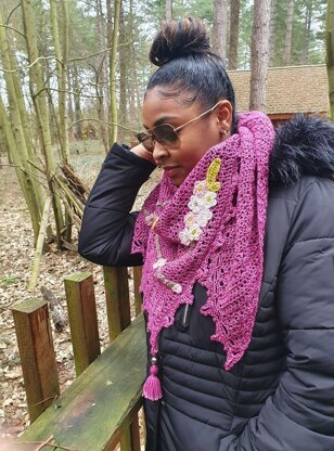Eden Cottage Yarns Brimham 4ply, 85% Merino wool/15% nylon, 100g/400m/436yds Yarn A: Campanula x 2 skeins Eden Cottage Yarns Brimham 4ply, 85% Merino wool/15% nylon, 20g/80m/87yds Yarn B: Hydrangea x 1 skein Yarn C: Fern x 1 skein Yarn D: Antique rose x 1 skein Yarn E: Compost x 1 skein Yarn F: Natural x 1 skein