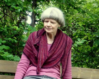 A shawl for many variation. Both sides look the same. The curved shape make it lie smoothly around your neck and shoulders. You can fix the ends in the holes. Use every lace or fingering weight yarn. The waves look good in a color change yarn. A combination of leftovers, also in different weights is fine too. The fotos are from a shawl made in various lace yarns You knit in garter stitch in short rows and some simple lace holes. The pattern includes a diagram and charts. The pattern is in English and in German.