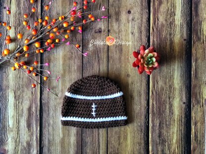 This crochet football hat is available in newborn baby to adult sizes. If you're familiar with crochet beanies, this is just a basic hdc hat. I added one little technique to the white stripes which really makes them stand out! I've detailed how to do it in the notes and pattern below, in case it's a new technique for you. And I'm always happy to answer any questions!