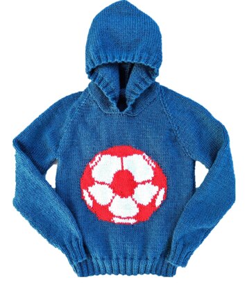 A knitting pattern for a sweater with hood - your youngster will love to wear this Football Hoodie!